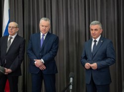 The PMR President Vadim Krasnoselsky and the leaders of the Russian delegations who arrived in Pridnestrovie on a working visit, Alexander Lukashevich and Vitaly Tryapitsyn, talked with media representatives at the end of the meeting