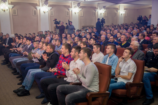 On the stage, there were both beginning athletes and experienced football veterans. Well-deserved awards were given to winners and prize-winners of Pridnestrovian Football Championship and teams that showed the best results in the mini-football league. "Interdnestrcom" teams (mini-football league "A"), "Junior" (Pridnestrovie Football Championship) and "Sokol" (veterans) were on the football Olympus. Prestigious trophies were given by the head of state Vadim Krasnoselski to the best in their class.