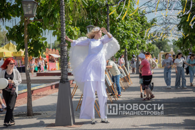 05 Jul., 2024, 20:38Pridnestrovians are preparing for the Day of Family, Love and Fidelity. A series of thematic events has started. The “Family is a magical symbol of life” family festival is taking place in the capital’s Catherine Park. Its program includes a ceremony honoring families with rich experience. This is a traditional event. The PMR President with his wife take part in it obligatory. The Krasnoselsky couple greeted the Korobkin family on the Alley of Fountains. The head of the family Denis Korobkin introduced to the guests of honor his wife – the namesake of the wife of the PMR President – Svetlana and their children – Maxim and Nika. The couples went to an exhibition of creativity of Pridnestrovian masters. Svetlana Krasnoselskaya wrote on one of the canvases that a family begins with a happy childhood, where there are grandparents, mother and father.