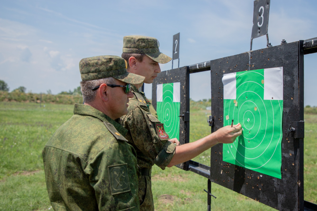 The third component - shooting from the main types of small arms and weapons of armored personnel carriers and the study of tactical and technical characteristics of the main types of weapons, equipment and their combat capabilities. Commander in chief Vadim Krasnoselsky showed the best result from the Kalashnikov assault rifle: seven defeats on targets with three needed for the “excellent” mark.