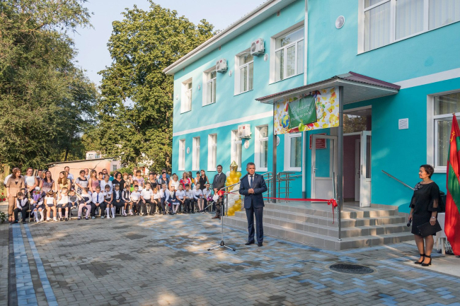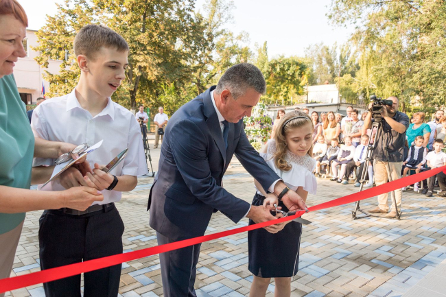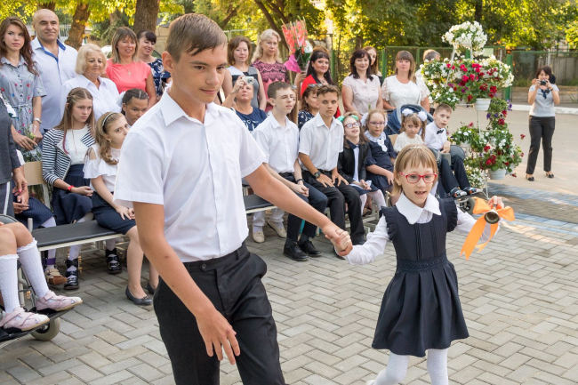 03 Sep, 2019, 11:15The first school bells sound today in all educational institutions of the republic. The President visited the festive assembly meeting of municipal specialized educational institution number 2 - the capital's comprehensive school-kindergarten for children with violation of the musculoskeletal system. There is a double triumph here today: the beginning of the school year is celebrated with a housewarming party - a new building of the educational institution is being opened. The pupils and the leadership of the educational institution cut the symbolic red ribbon together with the PMR President Vadim Krasnoselsky.
