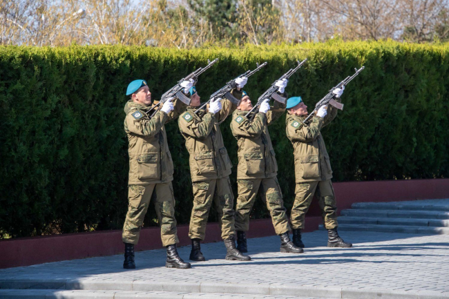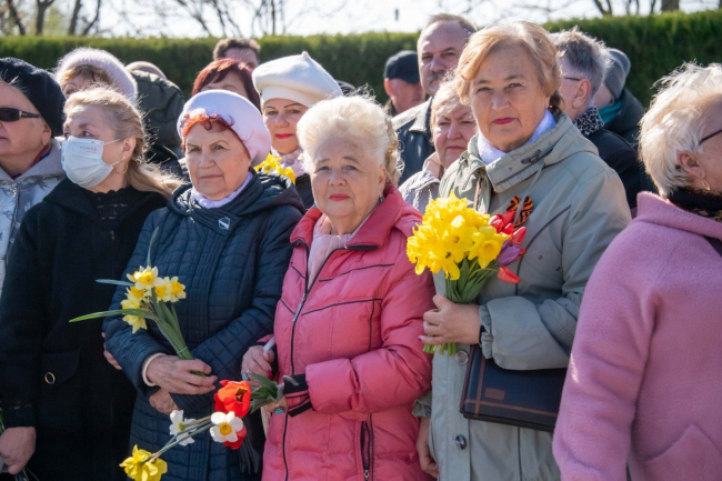 It was mentioned that German troops captured Tiraspol on August 6, 1941, and were expelled after 970 days of occupation - on April 12, 1944. The spring of liberation was presented to the region by the troops of the 3rd Ukrainian Front. The names of Mikhail Sharokhin, who commanded the 10th Guards Krivoy Rog Airborne Division of the 37th Army, and Private Mamedov, who raised the red flag of the victorious country over the building of the dilapidated Tiraspol theater, were remembered with gratitude today. Words of gratitude were addressed to the officers and soldiers of the 92nd, 118th and 228th rifle divisions, who entered Tiraspol on the night of April 12, and to the local residents who staunchly survived during the war years and restored the city after the victory over the Nazis. The memory of the fallen and dead was honored with a minute of silence. Scarlet carnations from the President and the entire Pridnestrovian people were lowered to the Eternal Flame – a symbol of unfading memory. The unfading gratitude of the descendants is symbolized by fresh flowers left by the participants of the ceremony at the pedestals of the monuments of the memorial complex and on stone slabs with the names of the defenders who in different historical periods gave their lives for the freedom and independence of the city and country, peace in the Pridnestrovian land.