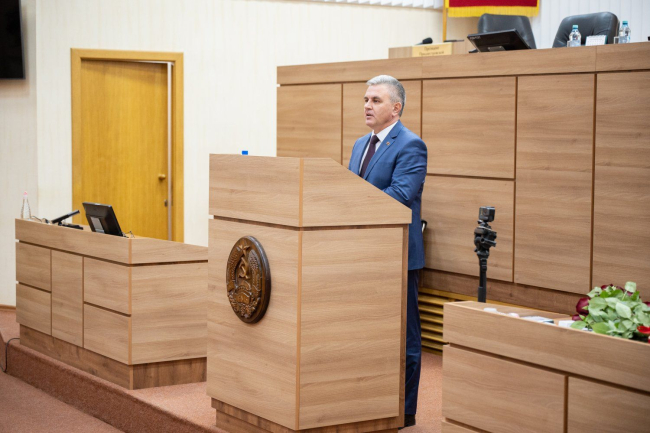 The festive event was opened by the Chairman of the Supreme Council of the Pridnestrovian Moldavian Republic. Alexander Korshunov recalled in his welcoming and congratulatory speech that the first meeting of the first government body of the young republic took place on the 29th of November, 1990. The Speaker focused on the fact that the first composition of the deputy corps was formed from industrialists, farmers, and representatives of public organizations. The head of the legislature spoke about the priorities, main directions and principles of the activities of the current Supreme Council, without leaving aside continuity: the Consultative Assembly of the first Pridnestrovian deputies and the Youth Parliament operate under the legislature.