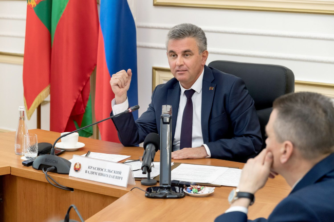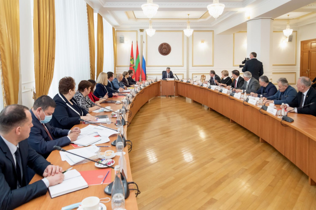 13 Апр., 2021, 17:04The President held an extended meeting. The participants are the leadership of the presidential executive office, the PMR Government and the Supreme Council, members of the presidiums of the legislative and executive branches of power. The meeting took place at the site of the House of Official Receptions. The working discussion, organized in person for the first time in a long time, lasted more than six hours. The agenda includes issues requiring detailed joint discussion. They discussed economy, budgetary, tax and social policies, discussing forecast data, realities, plans and prospects. Attention was paid to the drafts of some strategic documents. Further developments on the capital investment program and the program for the acquisition of medical equipment, covering the plans for the period 2022-2024 was discussed, as well as the issue of the budgetary fund forming to combat the spread of COVID-19.