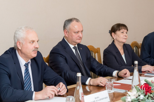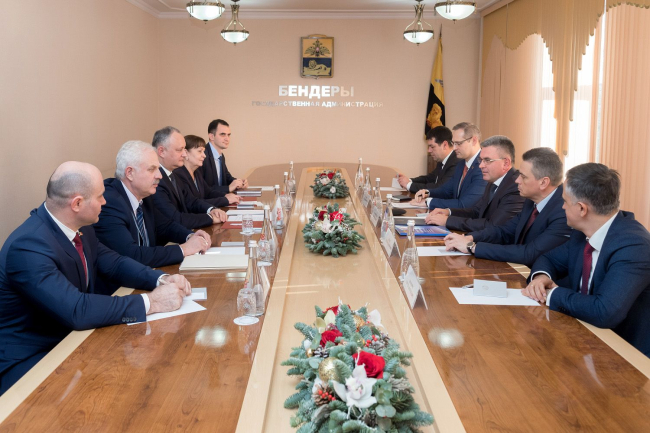 Bendery, December, 25. / Novosti Pridnestrovya/. The meeting of presidents of Pridnestrovie and Moldova took place in the Bendery State Administration. At the end of Vadim Krasnoselsky and Igor Dodon's conversation in private members of official delegations of the parties joined the discussion, the Press Service of the President of the PMR reports.