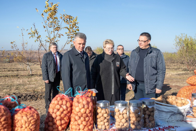 The special pride of the agrarians from Shipka is the walnut and almond orchards (the area –10 and 16 hectares, respectively). Vadim Krasnoselsky was here for the second year after the laying of the almond orchard. Only forecasts were made then. Now we can talk about the yield during this visit. Waterhouse director Margarita Yakovleva said that one tree gives approximately 12 kilograms of almonds. Now is the height of the harvest campaign. About 60% of the area of the almond orchard has been removed. 5 tons of products were collected. The 2021 crop is good thanks to this year's rainy summer. 11% of almond trees were lost, which unlike walnut trees did not tolerate moisture deficit in the dry 2020, said the chief agronomist of the enterprise Vitaly Karaman.