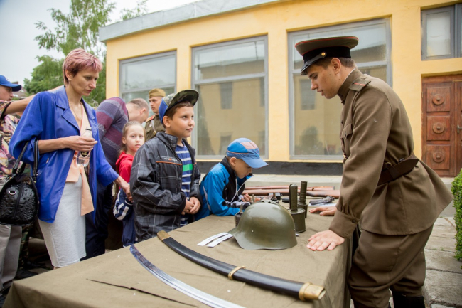 The military base of the OGRF became the host of a large-scale celebration where one could see Soviet and German WWII weapons, go down to a soldier dugout and taste army porridge