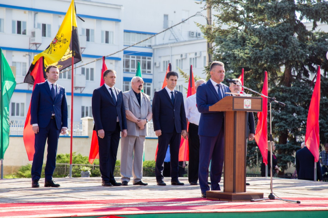 The first president of the PMR, Igor Smirnov, and the head of Bendery's state administration, Roman Ivanchenko, also addressed the rally.