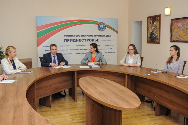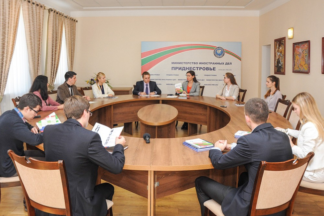 The foreign ministry's employees discussed with school students, many of whom are guests of our country, security-related issues of the Black Sea region and Pridnestroive's role in geopolitical processes in the Eurasian area.