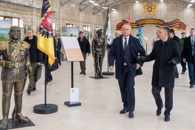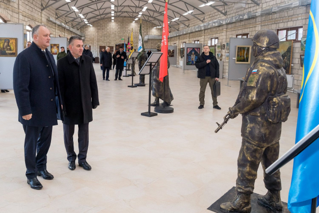 During the visit to the park, the meeting participants visited the chapel, opened on the day of centenary of Romanov family execution, as well as the church of Alexander Nevsky, restored in the period of modern history of Pridnestrovie. The meeting participants visited the exhibition hall: the guests studied the permanent exhibition "Soldier-Liberator" Gallery”. This is a kind of timeline, assembled from figures of full-length Russian warriors who defended peace on the Dniester at different times. The interlocutors touched upon the topic of modern peacemaking, having exchanged views on the current situation around the peacekeeping operation under the auspices of Russia.