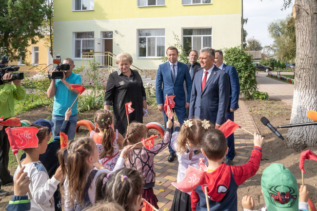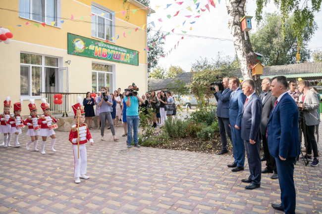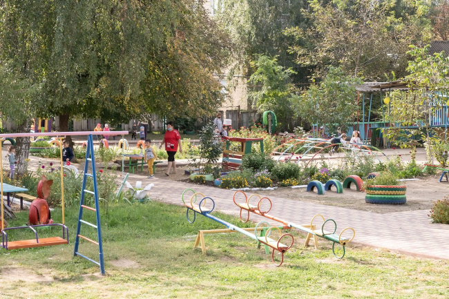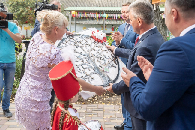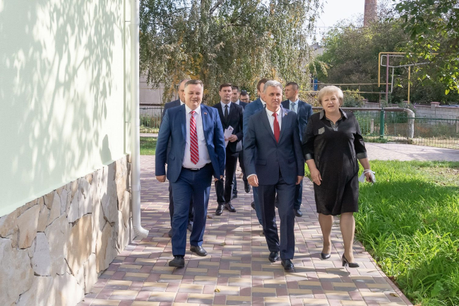 17 Sep, 2021, 13:45The Child Development Center No. 11 "Ivushka" of Dubossary will celebrate the 43rd anniversary of its opening Tomorrow. The kindergarten began to accept congratulations today. The President, while in Dubossary, visited the institution. Accompanied by the PMR Government Chairman Alexander Martynov, the Head of the district administration Ruslan Chaban and the Head of the kindergarten Anna Malay, Vadim Krasnoselsky walked through the territory of the institution, noted obvious infrastructural changes, and asked about future plans. They said that they will update all the shady sheds in the walking areas. So far, four have been overhauled thanks to the capital investment program, this is a small fraction of what has been done here with the help of the Capital Investment Fund. The "Ivushka" Center first entered the state program in 2018, then in 2019 and 2021. Financial resources were also allocated through the municipal line. They replaced the heating system and all the windows, carried out roofing work, tiled the adjacent territory and paths leading to the playgrounds. Laminate flooring was installed in groups, classrooms and the music room. Kitchen facilities were equipped with the necessary furniture. The team is especially proud of its facade colors. The buildings were not only tidied up on the outside, but also plastered in colors chosen by the staff, pupils and their parents. They say that polychromy is not only pleasing to the eye, but also makes it easier to navigate. Vadim Krasnoselsky drew attention to the unusually decorated flower bed. It turns out that the employees creatively and economically approached the issue of disposal of construction waste, using them as a design solution for landscaping the territory.