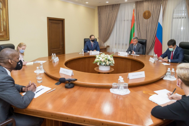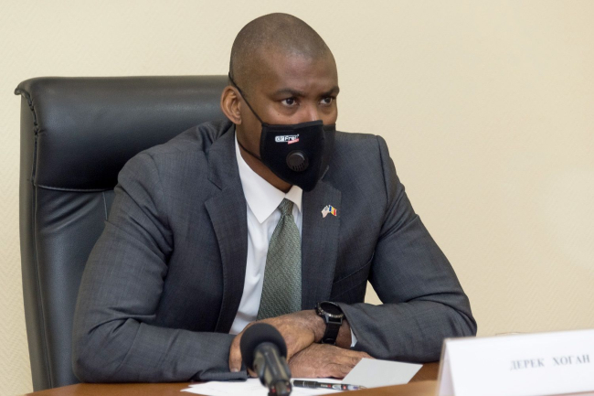 Dereck Hogan, in turn, noted that the issues raised are complex in nature, and expressed his readiness to share his vision on each item on the agenda. The diplomat considers the pandemic to be one of the reasons for the slowdown in the negotiation process. Speaking about this global problem, Dereck Hogan was interested in how anti-coronavirus activity is organized in Pridnestrovie. As for rumors about alleged obstacles by the Pridnestrovian side in the movement of teachers and students of Moldovan schools with teaching based on Latin script located in Pridnestrovie, the US Ambassador confirmed that he was personally convinced that there were no such facts. Coronavirus posts were also discussed. Noting that he welcomes gradual reduction of their number the American guest asked about prospects for complete solution of this problem. Vadim Krasnoselsky explained that the appearance of COVID posts is a forced measure of an exclusively humanitarian nature, aimed at preventing import of coronavirus. As soon as epidemiological situation in both republics stabilizes, the remaining coronavirus posts will be removed, Vadim Krasnoselsky assured.