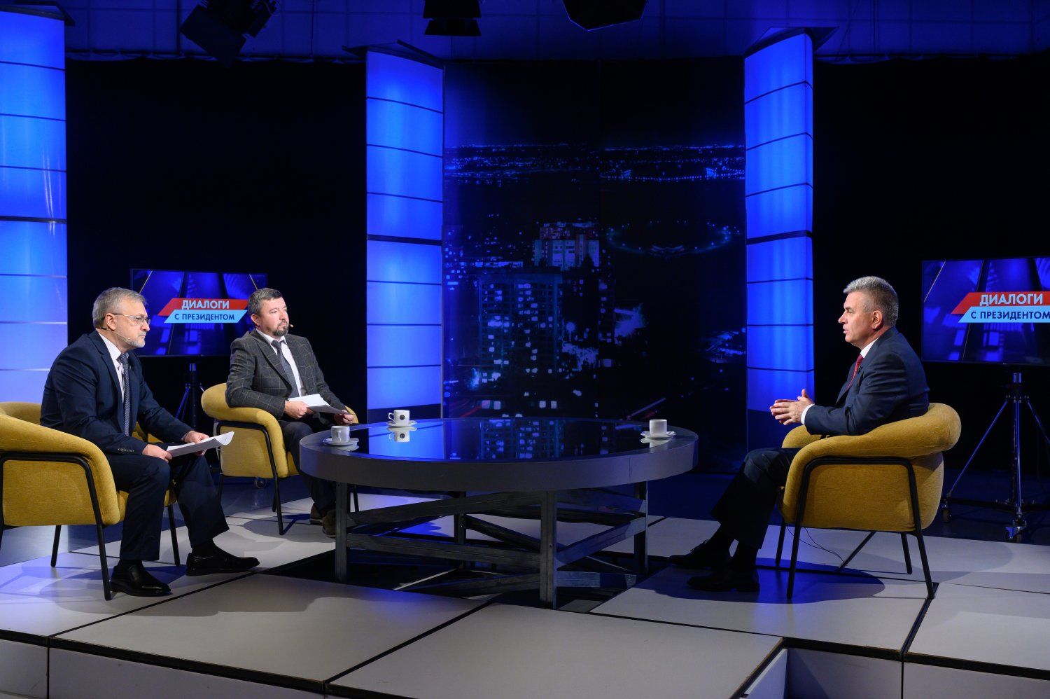 23 Dec., 2025, 11:53The President's dialogue with television editors took place in a studio. Vadim Krasnoselsky's interlocutors were Dmitry Matveyev and Igor Avrenev. The conversation lasted over an hour. They discussed domestic and foreign policy, peace and security, the state's achievements, objectives, and prospects, the Pridnestrovian people, emotions, musical preferences, and family traditions. Watch the full interview this evening on the First Pridnestrovian Television Channel and TSV, listen on Radio-1, and read it on the News of Pridnestrovie news agency and in the Pridnestrovie newspaper. All materials will be available on the official website of the PMR President.