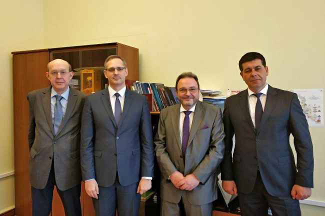 10 Апр., 2019, 15:57Tiraspol, April, 10. / Novosti Pridnestrovya/. Within the working visit to Moscow, the Minister of Foreign Affairs of the PMR Vitaly Ignatiev met the Ambassador at large the MFA of Russia Sergey Gubarev. The Ambassador at large in the rank of the Deputy Minister of Foreign Affairs of the PMR Ruslan Slobodenyuk and the deputy director of the Second Department of the CIS countries the Russian Foreign Ministry Vitaly Tryapitsyn also participated in a meeting.