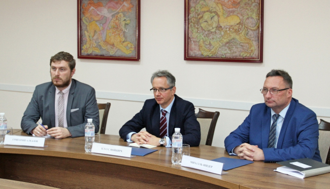 Tiraspol, October 22. /Novosti Pridnestrovya/. A meeting of the PMR Foreign Minister Vitaly Ignatiev with the Head of the OSCE Mission to Moldova Claus Neukirch was held at the Foreign Ministry. The Deputy Minister of Foreign Affairs of the PMR, Alexander Stetsyuk, and PMR Ambassador-at-Large in the rank of Deputy Minister of Foreign Affairs, Ruslan Slobodenyuk, also attended the meeting.