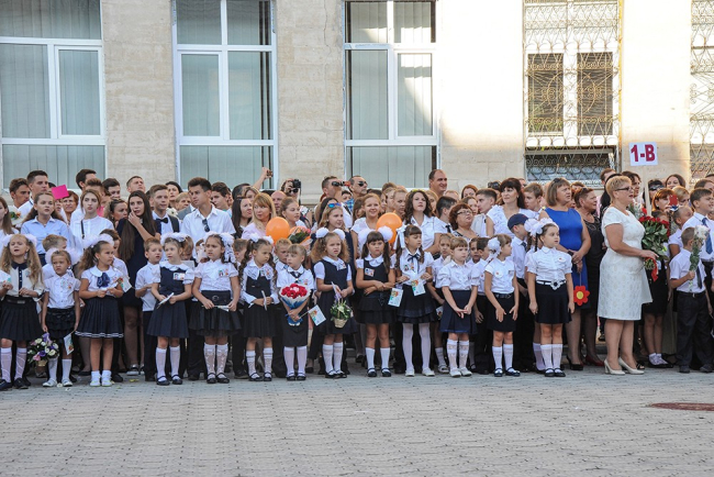 Today a whole delegation of guests has shared with gymnasium pupils the happiness of the first bell ceremony. Among the guests were Pridnestrovie's president, Yevgeny Shevchuk, minister of education, Tatyana Tsivinskaya, Russian ambassador to Moldova, Farit Mukhametshin, and the founder of ANO Eurasian Integration, Aleksey Zhuravlyov.