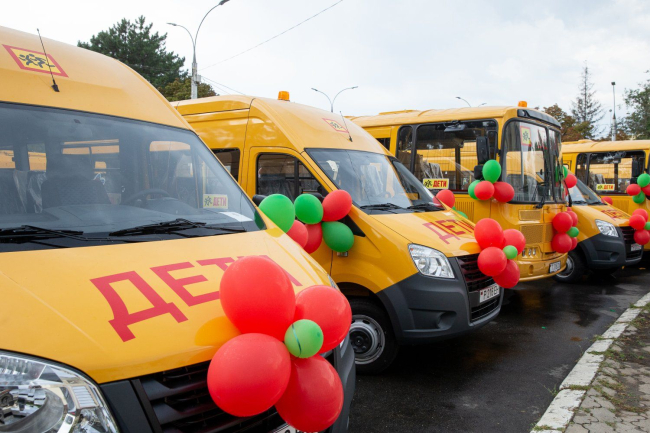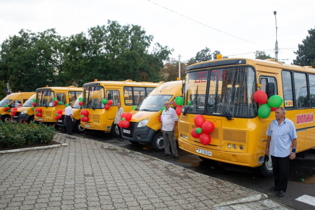 По поручению Президента ПМР Вадима Красносельского к началу 2024-2025 учебного года приобретены 17 транспортных средств: девять автобусов ГАЗ, каждый из которых рассчитан на 16 пассажиров, и восемь ПАЗов по 23 посадочных места. Покупка целевая: автобусы будут на системной основе доставлять к месту учебы и обратно дошколят и учеников сельских школ Слободзейского, Григориопольского, Дубоссарского, Рыбницкого и Каменского районов.