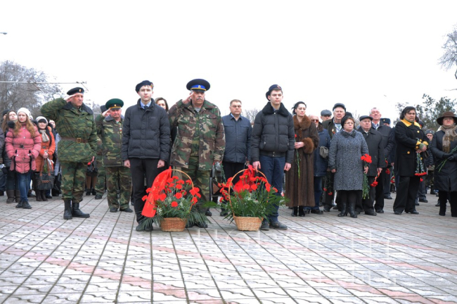 23 Feb, 2015, 13:20Собравшиеся возложили цветы к мемориальным плитам погибших в Великой Отечественной войне освободителей города