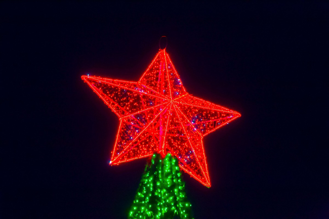 Отметим, что в этом году её зажигали по-особенному. На счет «раз» погасла одна часть площади, на «два» – другая, а на счёт «три» ёлка заиграла новогодними огнями.