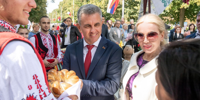 The PMR President with his wife visited the festive Slobodzeya farmsteads and witnessed the fountain launch in the central square of the city