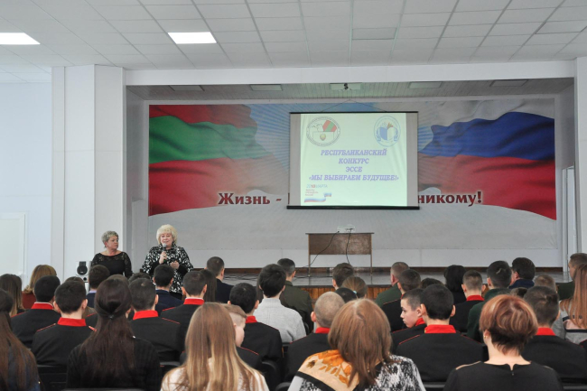 Тирасполь, 3 марта. /Новости Приднестровья/. В стенах Тираспольского Суворовского военного училища сегодня прошел очный тур республиканского конкурса эссе «Мы выбираем будущее». В нём приняли участие 28 человек – победители отборочных туров. Это учащиеся 10-11 классов организаций общего образования Приднестровья и ученики 9 классов Тираспольского Суворовского военного училища и Республиканской кадетской школы-интерната им. Ф.Э. Дзержинского МВД ПМР.