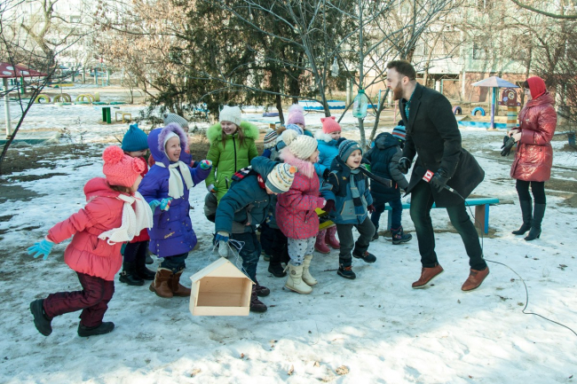 01 Фев., 2017, 15:45Тирасполь, 1 февраля. /ИА «Новости Приднестровья»/. Накануне представители Первого Приднестровского телеканала приняли участие в акции детского сада №19 «Покорми птиц зимой». Ведущие и корреспонденты помогли ребятам развесить кормушки, которые соорудили их родители заранее.