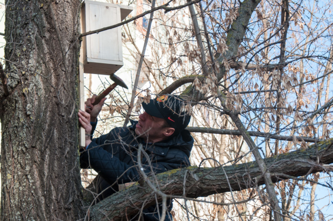 Из телевизионного круговорота на несколько часов выбрался и директор Приднестровской телерадиокомпании Игорь Никитенко. Он вместе с ребятами устанавливал скворечники и кормил птиц.