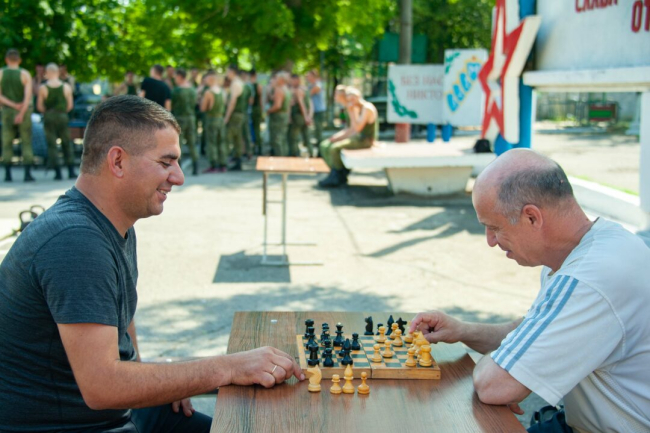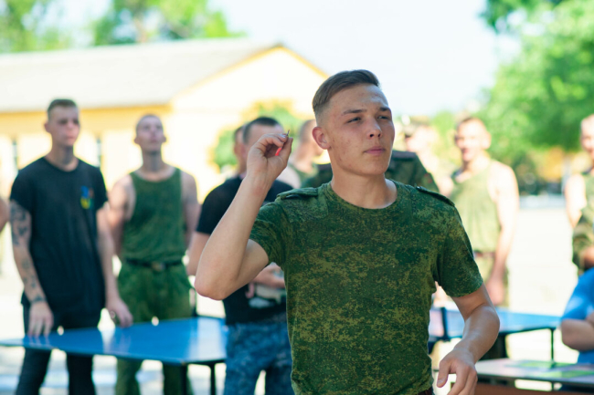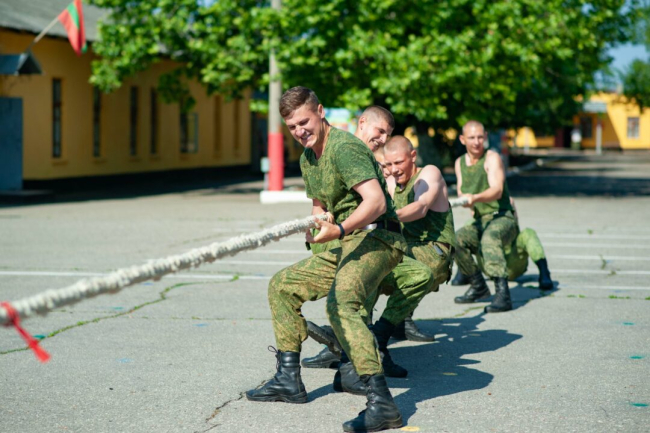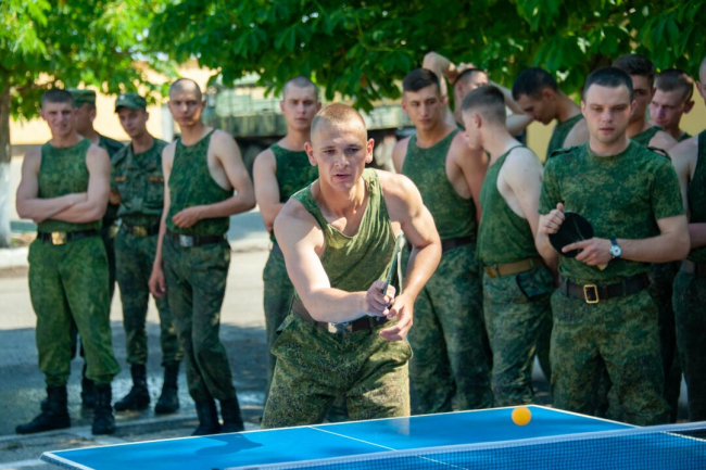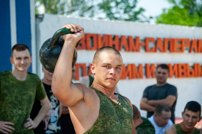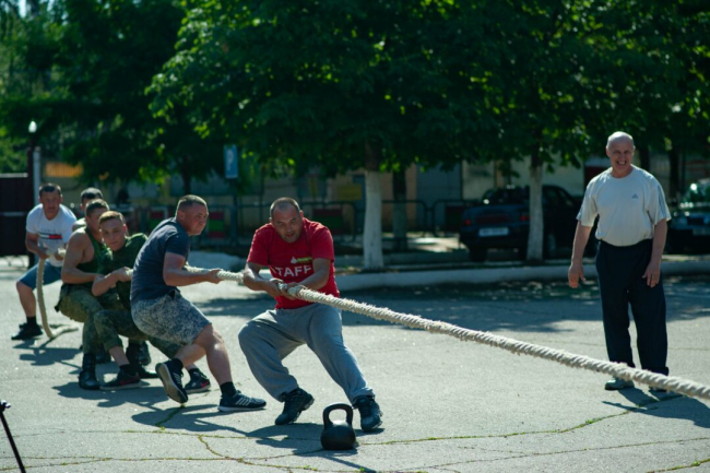 Проявить себя военнослужащие смогли в подвижных играх на открытом воздухе: волейболе, настольном теннисе, дартсе. Они также померялись силами в перетягивании каната и жиме гири.