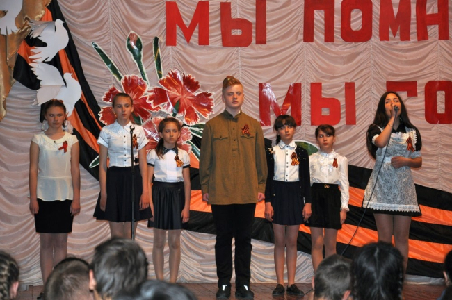 В ходе патриотической акции со стихами и песнями о войне выступили учащиеся Григориопольской общеобразовательной школы № 1 им. А. Нирши и школы № 2 им. А. Стоева.
