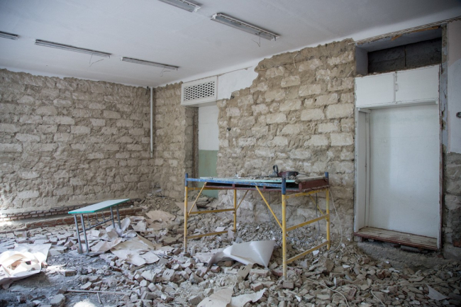«У нас реорганизация, будет школа-детский сад, под него выделили левое крыло. Сейчас там идёт полная реконструкция, пространство переделывается под группы детсада: снимаются полы, стены перестраиваются, полностью заменили систему отопления, будут менять котельную и т.д. Это делается, потому что здание садика в очень ненадёжном состоянии, рушится, поэтому решили соединить оба заведения, чтобы детям было хорошо», – рассказала директор средней школы с. Владимировка Елена Иванченко.