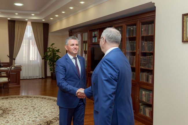 Тирасполь, 1 июня. /Новости Приднестровья/. Президент ПМР Вадим Красносельский встретился с Послом Российской Федерации в РМ Фаритом Мухаметшиным. На встрече речь шла об успешной реализации совместных наработок, связанных с усовершенствованием работы расположенного в Тирасполе выездного пункта консульского обслуживания, сообщает пресс-служба главы государства.