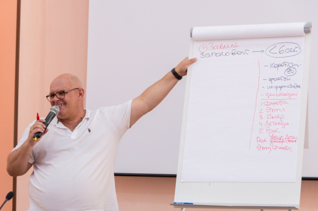 Российский гость расположил к себе аудиторию уже с первой минуты. Интересная и легкая подача информации, улыбка, открытость спикера, шутливые истории из жизни за более чем 30-летний опыт работы: студенты журфака и уже действующие мастера пера слушали Олега Щедрова внимательно, не пропуская ни единого слова.