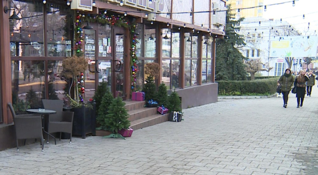 Предприниматели украшают витрины магазинов и фасады зданий, а в маршрутках появляется новогодняя атрибутика