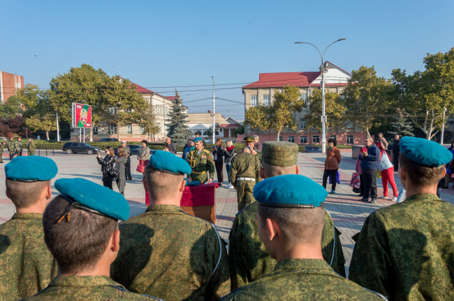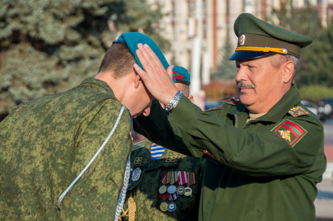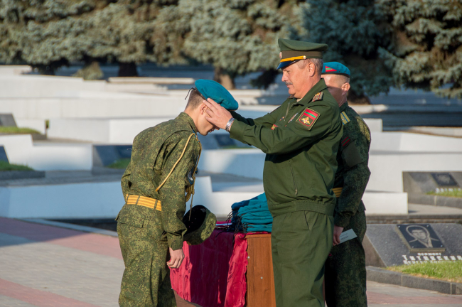 Тирасполь, 9 октября. /Новости Приднестровья/. Военнослужащим парашютно-десантного подразделения спецназа Министерства обороны вручили голубые береты. Торжественный ритуал традиционно провели на столичном Мемориале Славы в присутствии родных и близких молодых людей. Получению заветного символа принадлежности к армейской элите предшествовало многое. Полгода молодые люди изучали матчасть, проходили многочисленные инструктажи, а непосредственно перед прыжками тренировки стали ежедневными.