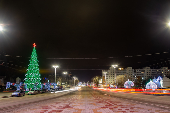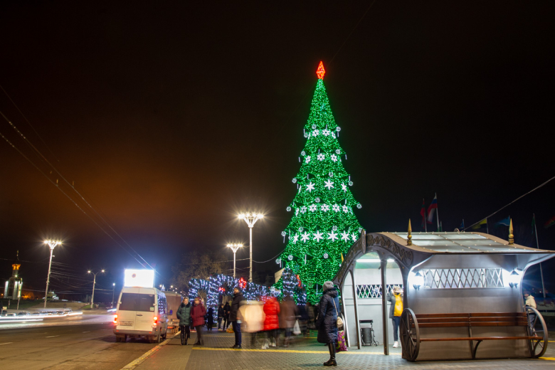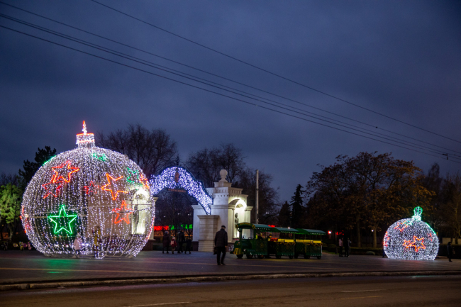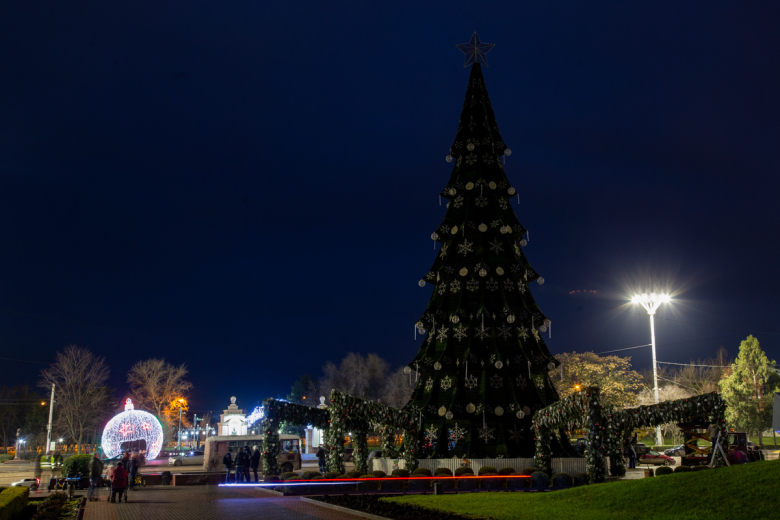 Отметим, что в этом году в центре Тирасполя установили сразу три ёлки. Помимо главной, искусственной, в Екатерининском парке есть ещё две живые ели. Также новогодние деревья украшают каждый микрорайон города и впервые – въезд в столицу со стороны Бендер.