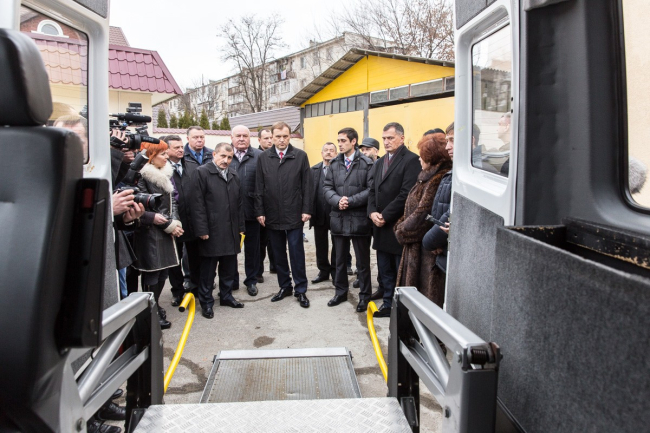 Также сегодня ещё три автомобиля, специально предназначенные для перевозки инвалидов-колясочников, были переданы в социальные учреждения республики. По одному авто получили службы социальной защиты Тирасполя, Бендер и Рыбницы. Ещё 4 авто для остальных городов и районов в Приднестровье прибудут до конца года. Все машины оборудованы специальными автоматическими подъёмниками, для того чтобы сделать передвижение инвалидов-колясочников более комфортным.