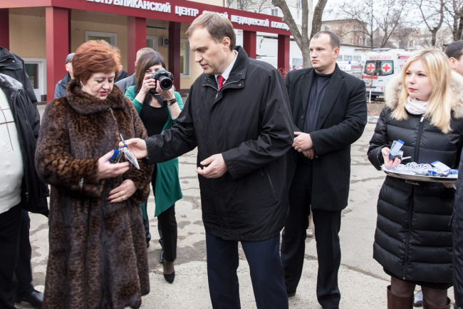 Новые автомобили марки «Форд» были собраны на территории России. Они укомплектованы современным медицинским оборудованием: в каждой машине установлен дефибриллятор, кардиограф, аппарат для искусственной вентиляции лёгких. Автомобили закуплены по программе приобретения нового медицинского оборудования, финансируемой за счёт поступлений от единого социального налога. Напомним, что с 2013 года работодатели отчисляют на эти цели сумму, равную 1% от зарплаты своих сотрудников.