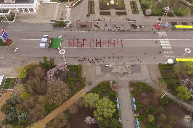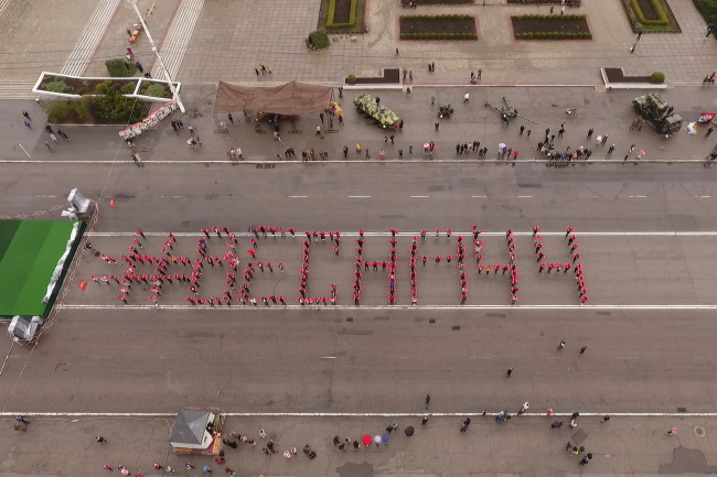 Тирасполь, 12 апреля. /Новости Приднестровья/. В столице прошла молодёжная акция. 300 учеников СШ № 2 выстроились в надпись «#Весна 44». Флешмоб провели в честь 75-летия освобождения города от немецко-фашистских захватчиков.