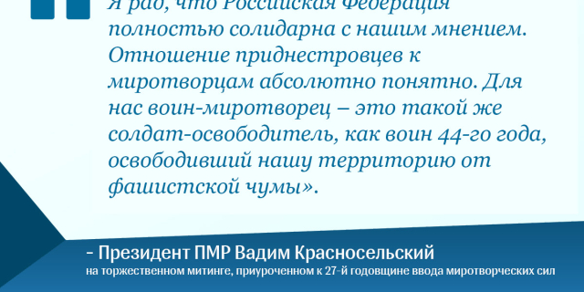 Президент ПМР: Для нас воин-миротворец – такой же солдат-освободитель 28 Июл., 2019, 14:28 Цитаты Цитата