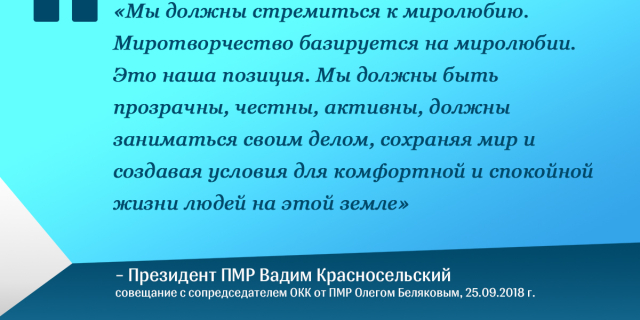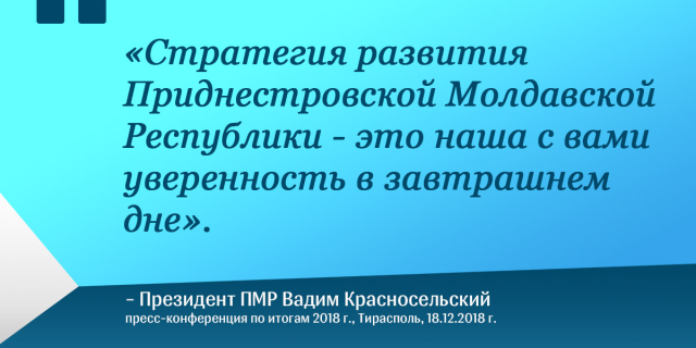 Надо работать так, чтобы каждый приднестровец был уверен в завтрашнем дне 26 Дек., 2018, 10:42 Цитаты Президент