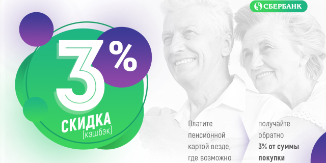 Пенсионная карта Сбербанка - это кэшбэк 3% везде и на всё!