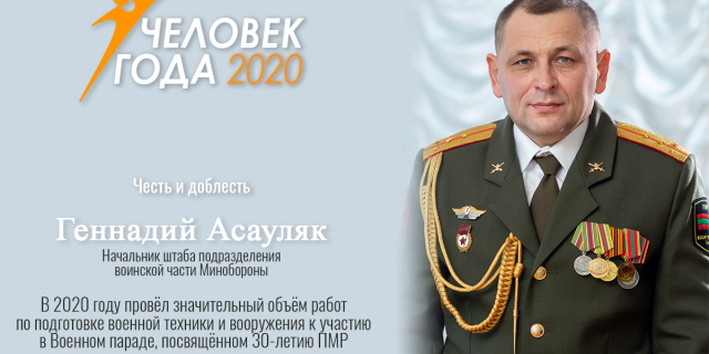 Геннадий Асауляк – победитель в номинации «Честь и доблесть» В 2020 году готовил военную технику и вооружение к участию в Военном параде, посвящённом 30-летию ПМР 28 Фев., 2021, 19:12 Общество Человек года