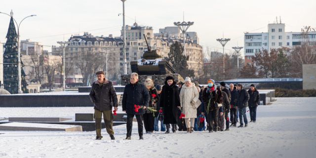 В столице почтили память воинов-интернационалистов Руководители исполнительных органов власти приняли участие в возложении цветов на Мемориале Воинской Славы 15 Фев., 2022, 11:27 Общество Тирасполь мемориал