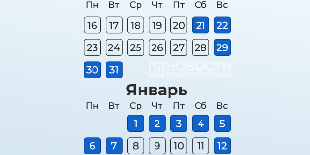 Приднестровцев ждут 10-дневные новогодние каникулы Отдыхать будем с 29 декабря по 7 января включительно 25 Ноя., 2024, 16:00 Общество Правительство ПМР Новый год
