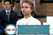 Тираспольчанка Дарья Монул вышла в полуфинал игры «Умники и умницы» на российском Первом канале Эфир этого известного интеллектуального телешоу прошел сегодня утром 18 Фев., 2017, 15:53 Общество Приднестровье Россия