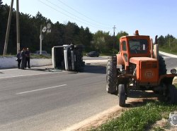На въезде в Рыбницу маршрутка врезалась в трактор