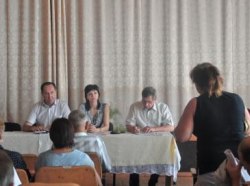 Глава государственной администрации Юрий Ларченко, заместители главы Наталья Погребан и Валерий Дмитриев провели встречу с общественным активом села