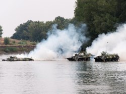 Бронетехника ОГРВ и ПМР преодолела реку, чтобы блокировать и ликвидировать условных «террористов»