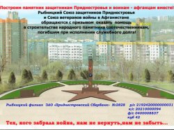 В Рыбнице на строительство памятника воинам-афганцам и защитникам ПМР уже собрано почти 27 тыс. рублей