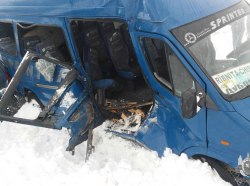 На заснеженной дороге в Рыбницком районе маршрутка столкнулась с Opel